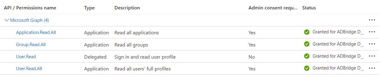 - Set up the app registration rights. The app requires the rights for the endpoint to look up the required information.