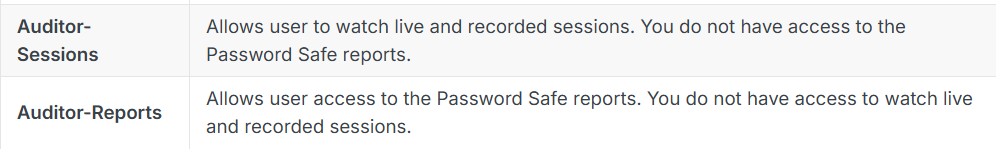 We’ve enhanced the Auditor role with greater precision by introducing two specialized roles: Auditor-Sessions and Auditor-Reports. These new roles provide focused access and improved control, empowering teams to manage session data and reporting.