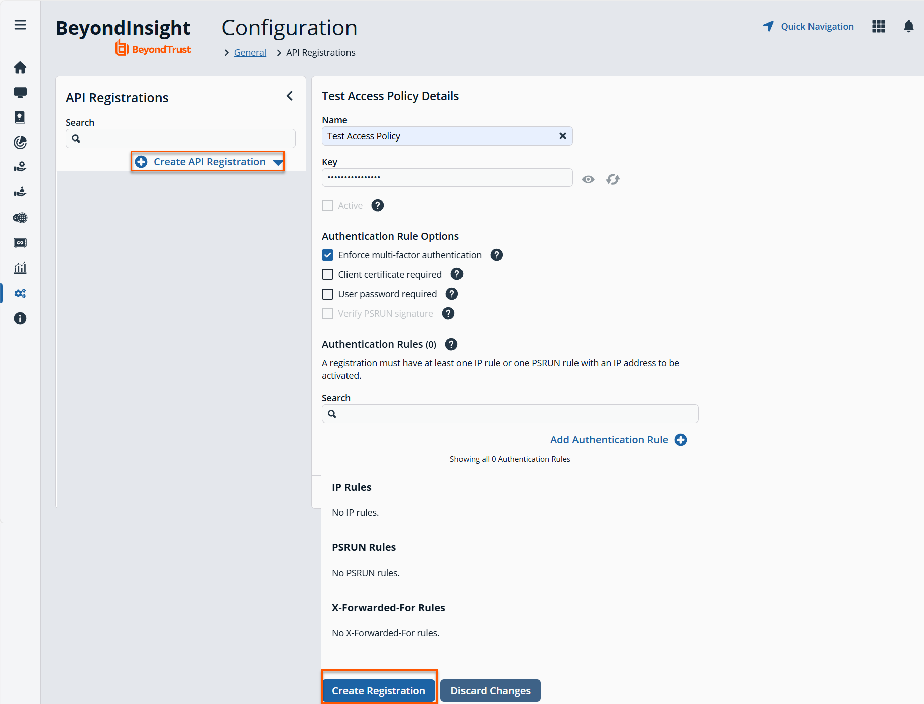 The API Registration page is only available to BeyondInsight administrators.