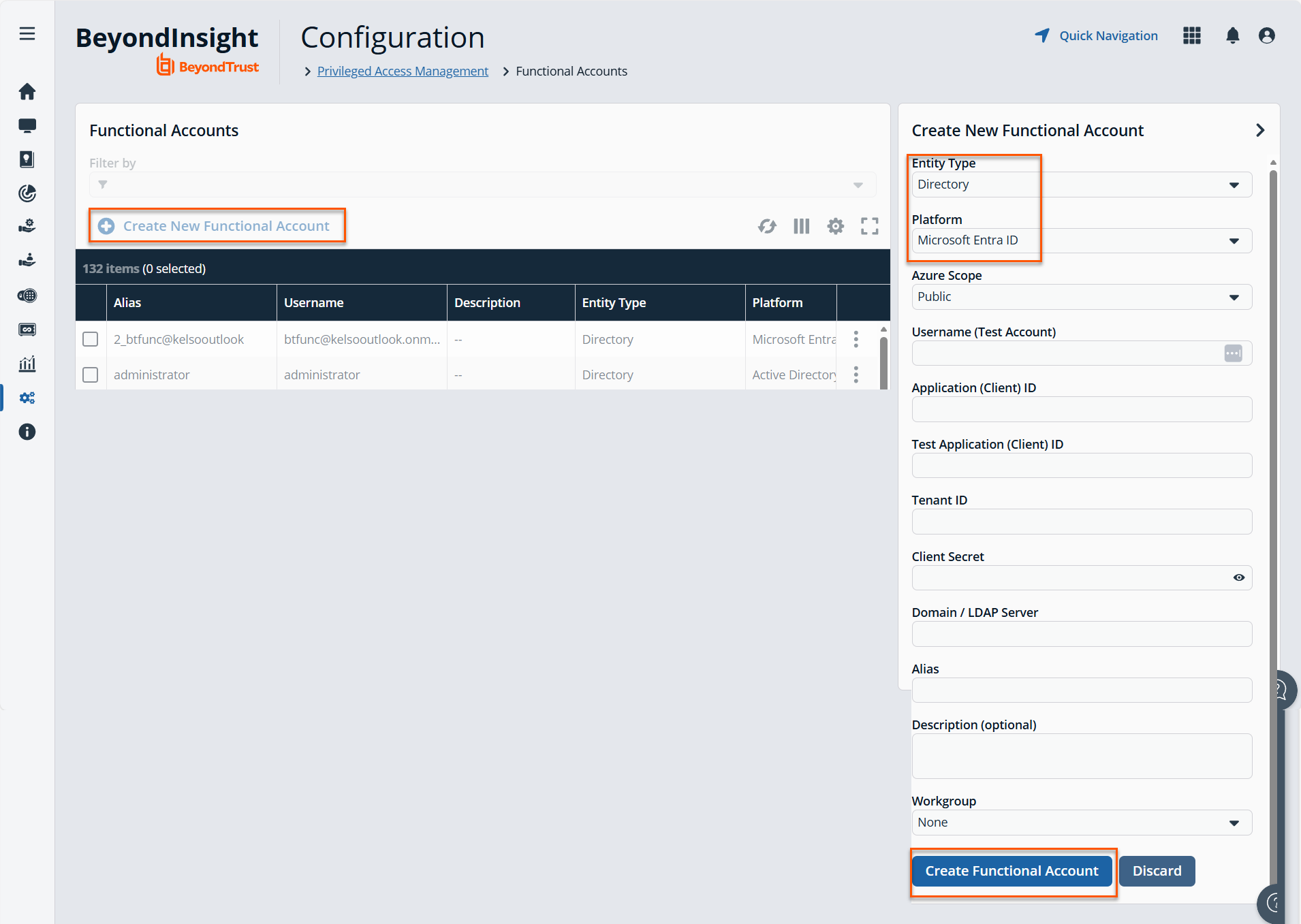 Under Privileged Access Management, select Functional Accounts.