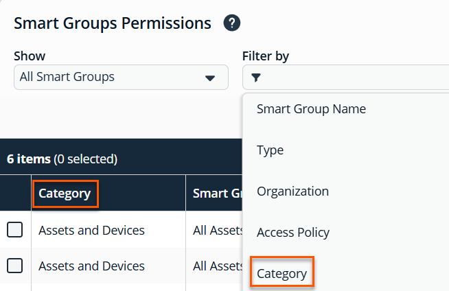 Smart Rules grid: Displays information based on filter selections. You can now filter the Category property in Group Details > Smart Groups.