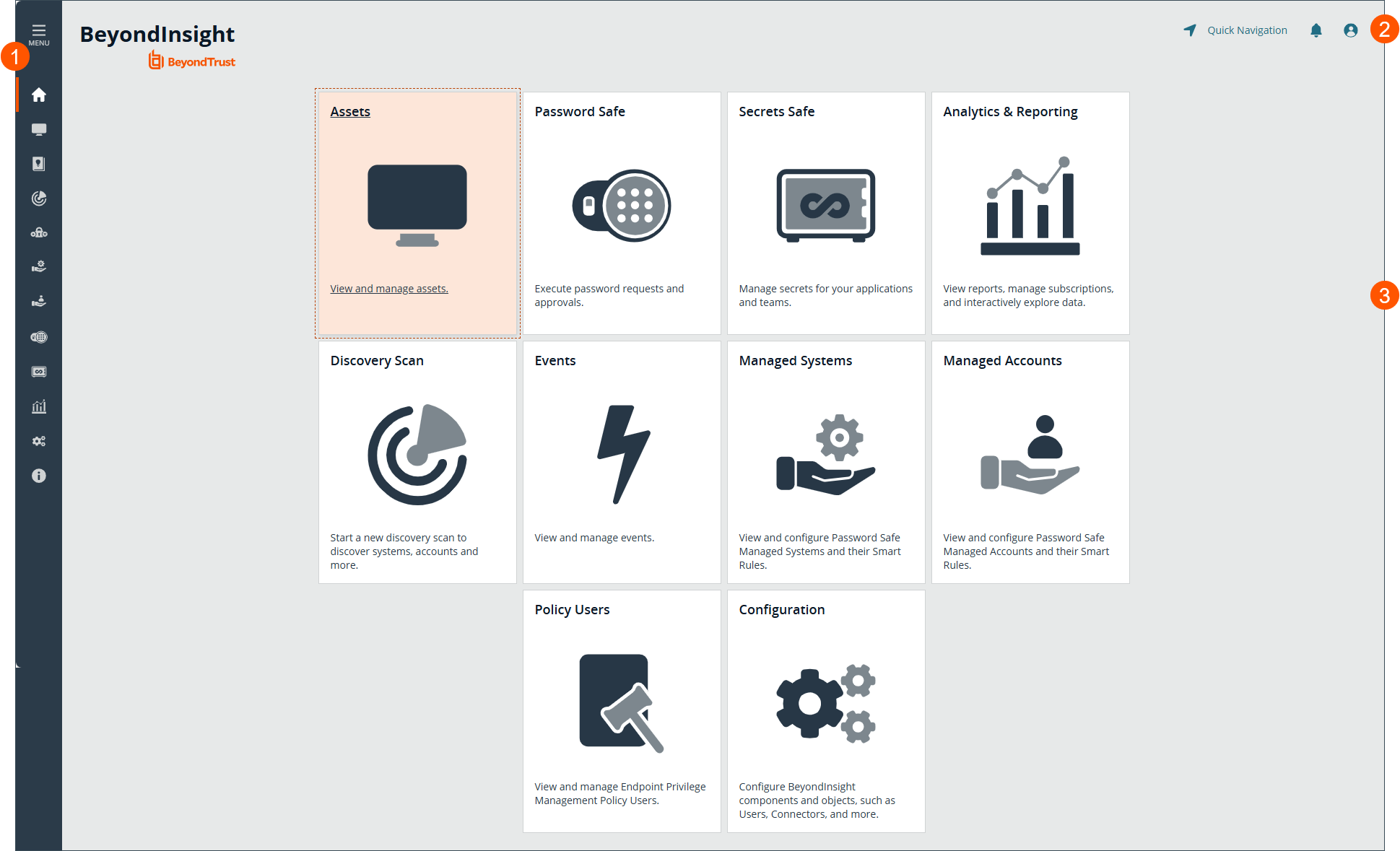 - Configuration: Configure BeyondInsight and Password Safe components and objects, such as users and groups, authentication settings, connectors, and much more.