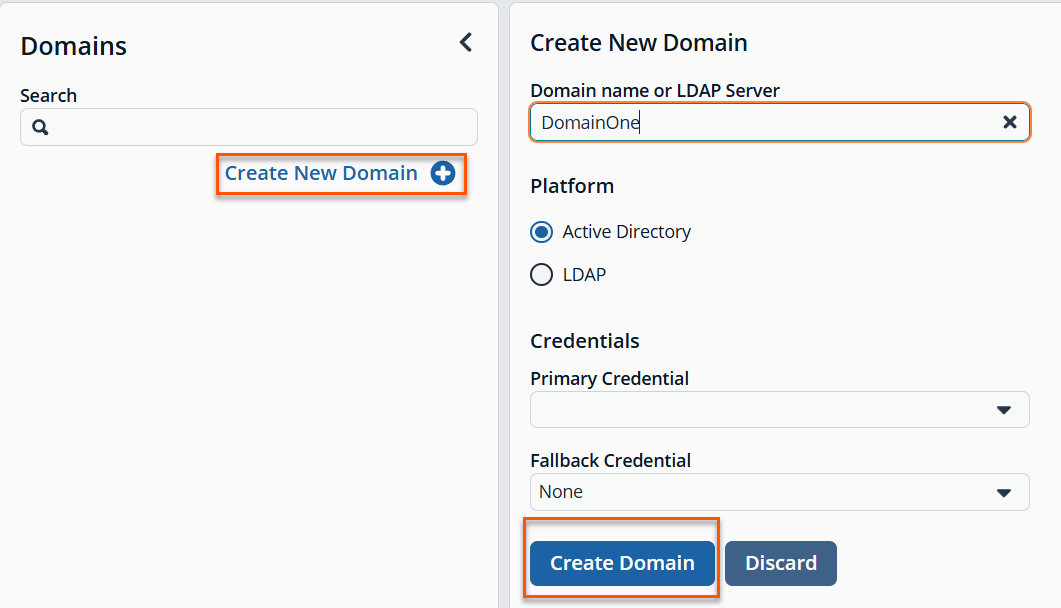 Follow these steps to add or edit primary and secondary credentials for a domain: