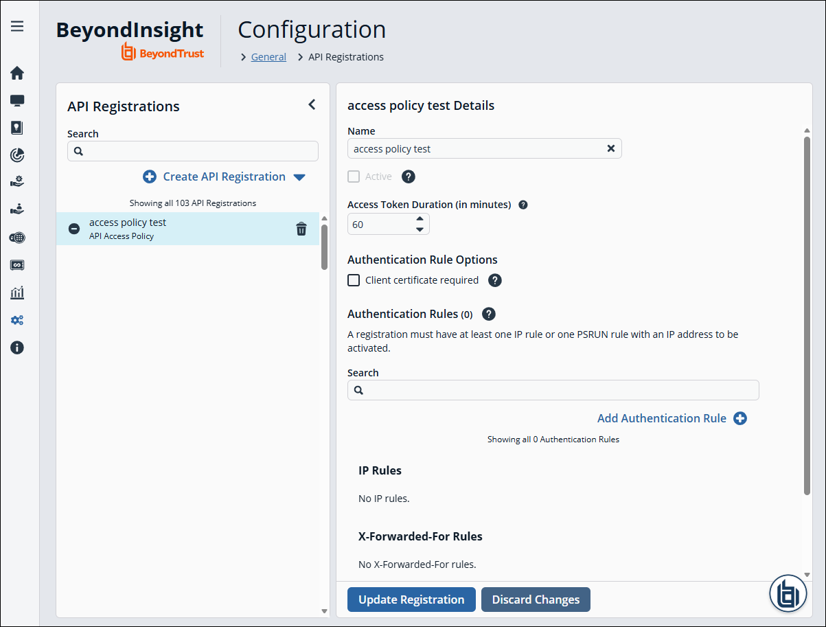 API registrations allow you to integrate part of the BeyondInsight and Password Safe functionality into your applications, which allows you to expand your application's overall functionality and provide enhanced security and access management.