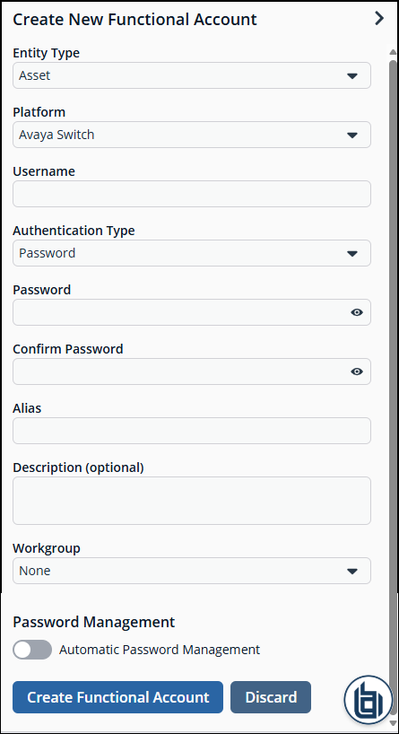 Click + Create New Functional Account.
