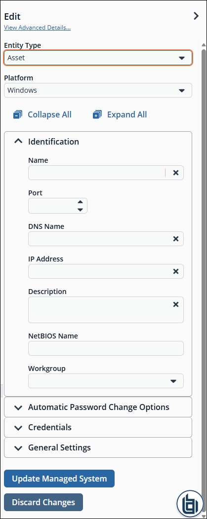 The Advanced Details page displays. - Under Advanced Details, select Managed Accounts.