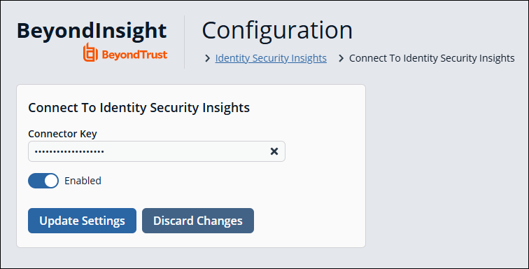 You must have administrator permissions in BeyondInsight to configure the connection to Identity Security Insights.