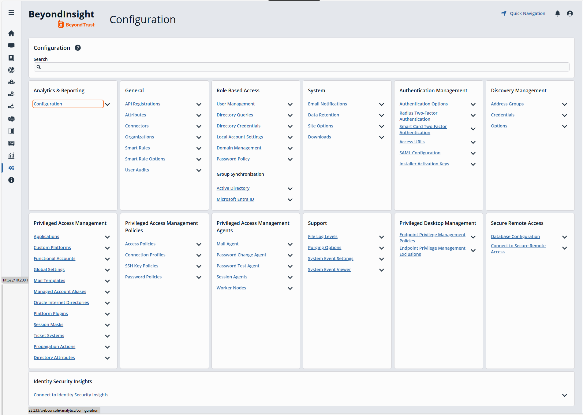 Open a browser and enter the URL for your Password Safe instance: https://<hostname>/WebConsole/index.html.
