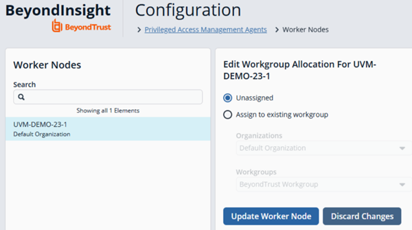 - For more information, see Assign a Password Safe worker node to a workgroup.