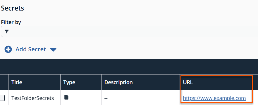 The URL column in the Secrets table now adds a hyperlinked address. If you click the hyperlink, it opens the URL in a new tab in your browser.