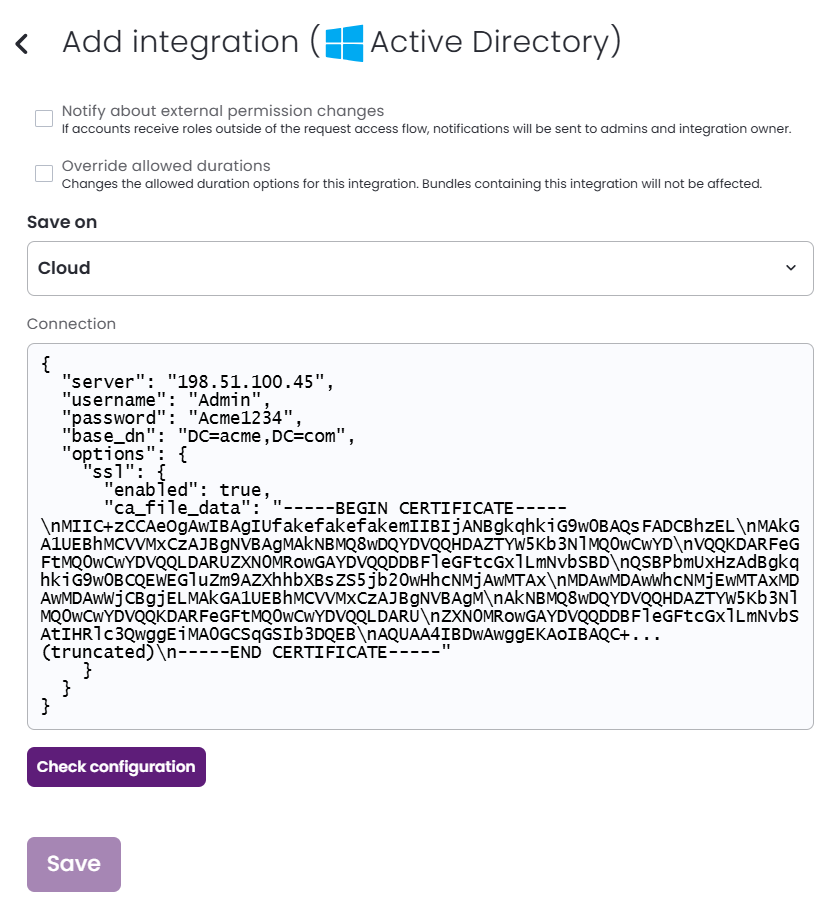 Support for self-signed certificates in Active Directory integrations