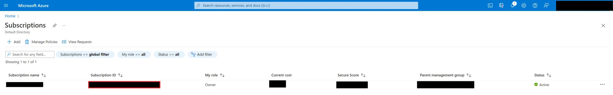 "subscriptions"– SubscriptionsIf you wish to manage multiple subscriptions, enter