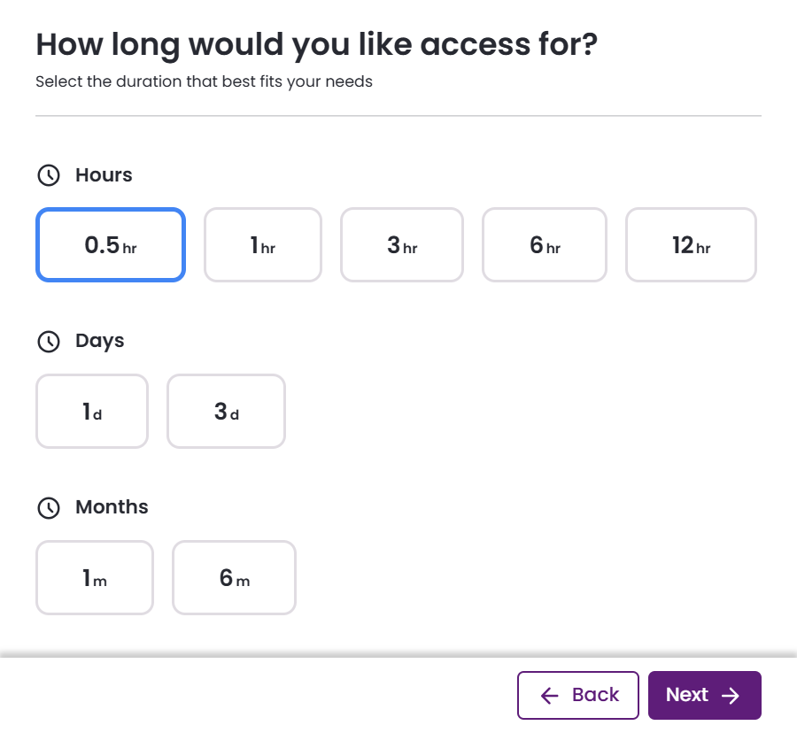 - Using the dropdown at the top right, you can make the request for yourself or on behalf of another user.