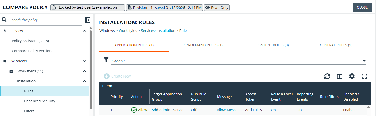 The Rule Filters count is clickable in Windows and macOS Application Rules pages, allowing quick access to filters applied to an app rule, including when the policy is opened in read-only mode.