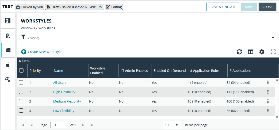 | Analytics | CSV exports form the Applications page ignored Workstyle and Policy filters. | Ensured CSV downloads now honor Workstyle and Policy filters. |