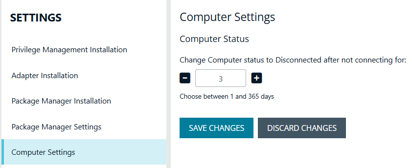 - Enter the number of days that pass before the status changes to Disconnected. The default value is 2 days.