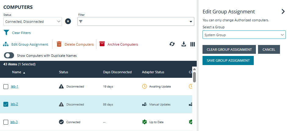 Optionally, click Clear Group Assignment to remove the computer from a group assignment.