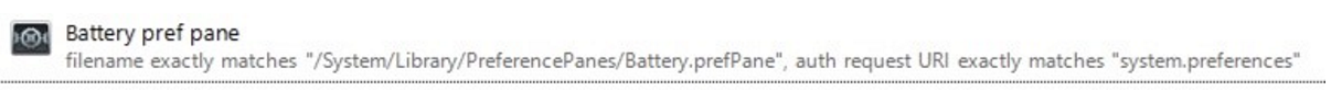 Important informationWhen adding the Battery preference pane to a policy, the match must include the URI and exact file path, similar to: