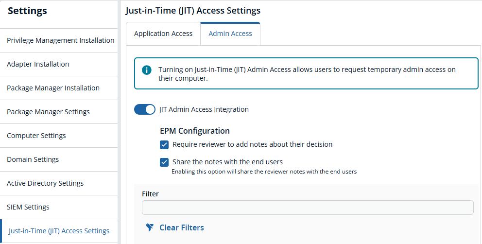 - To turn on the integration, select JIT Admin Access Integration.