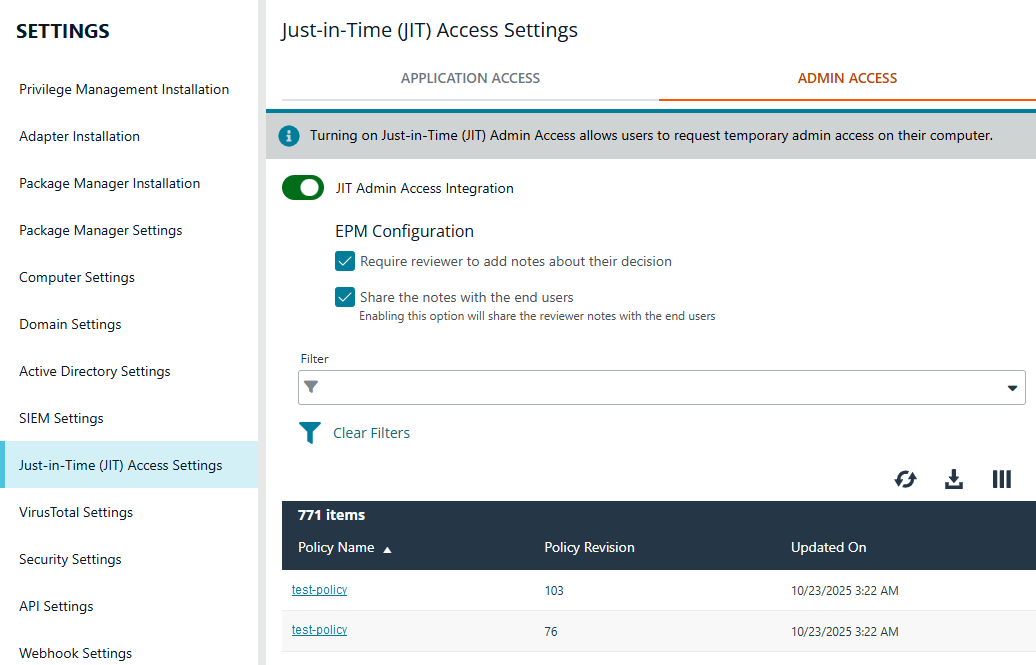 Approve or deny JIT Admin access requests on the JIT Access Management page.