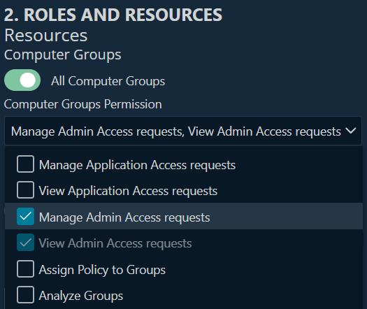 - If you select All Computer Groups, select one or more permissions from the Computer Groups Permission list. The user will have the permissions across all existing and future computer groups. The View Groups role is automatically selected with any of the other options.