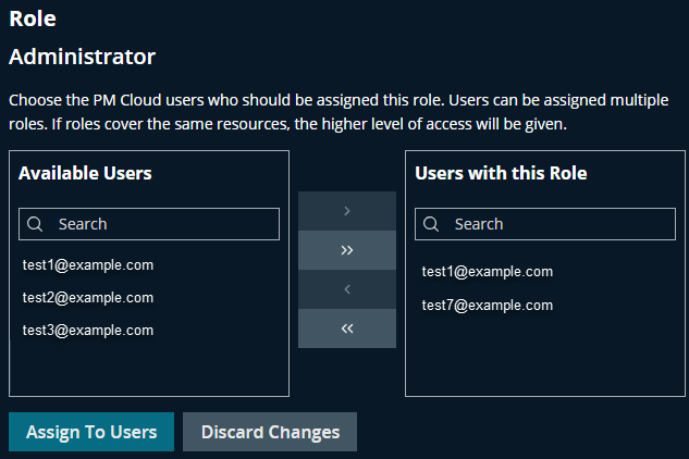 - Locate the user in the list then click the > button. Select more than one user and click the >> button.
