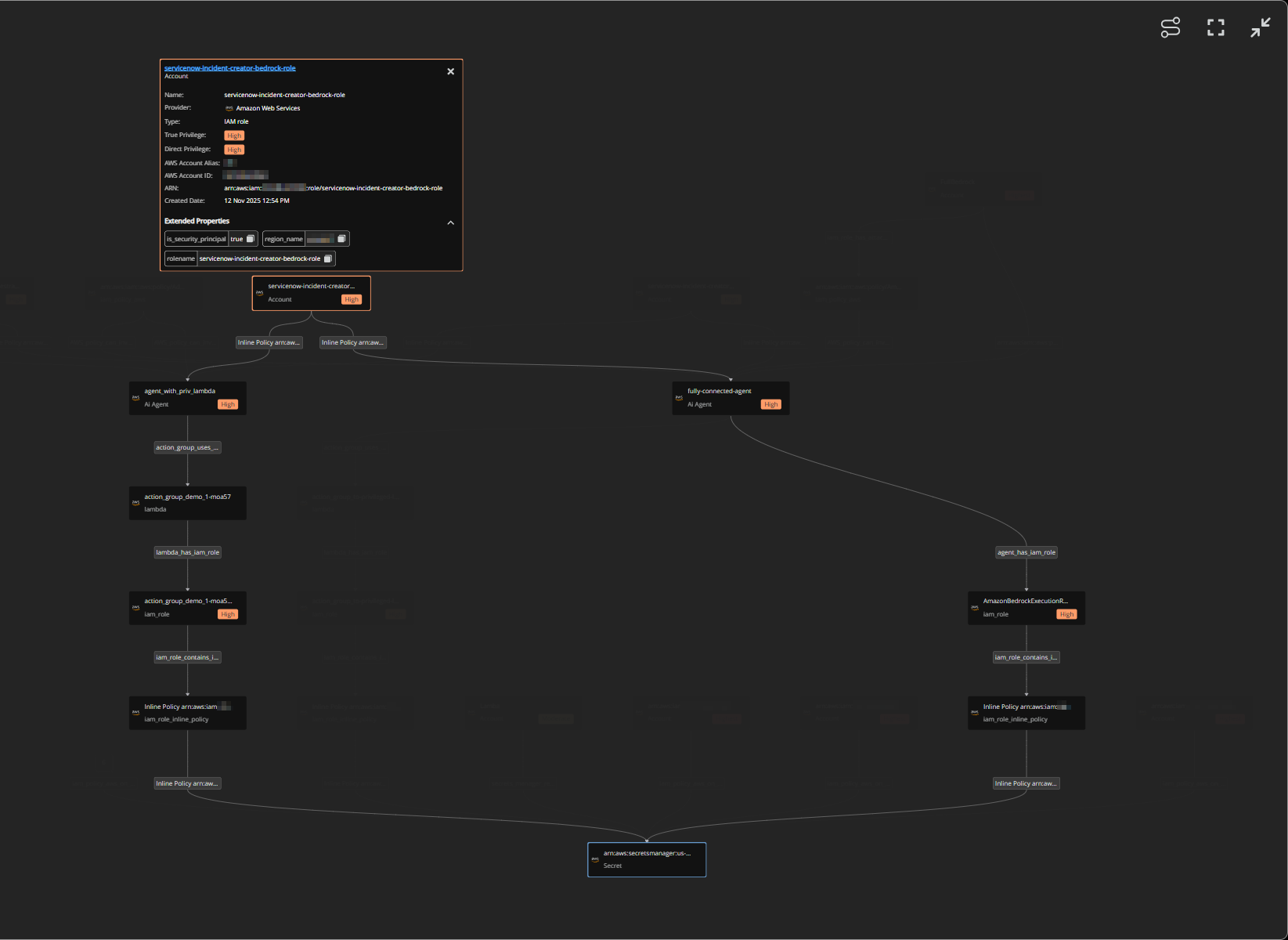 - AI security graph upgrade: The orbital graph in AI Security has been replaced with this enhanced graph component. The new hierarchical layout with auto-grouping and path highlighting makes it easier to understand AI agent permissions and resource relationships compared to the previous orbital visualization.
