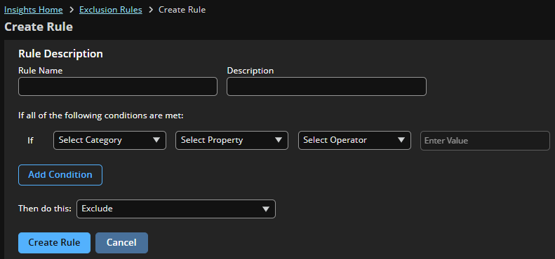 Click Create Rule to add a new exclusion rule, and provide the rule a user-friendly Name and Description.