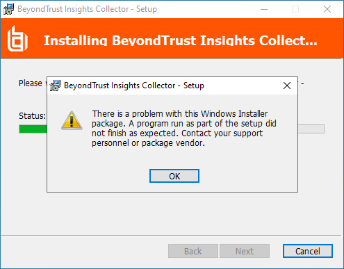 | BeyondTrust Insights Collector Service not Starting | Ensure the service accounts are granted Log on as a Service rights on the member server. |