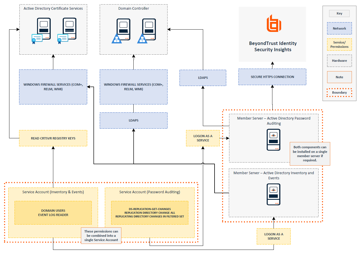 | Additional Service Account Permissions (If Active Directory has been hardened) | Read access to the following Active Directory attributes;userAccountControllastLogonlastLogonTimestamppwdLastSet |