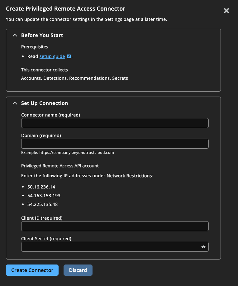 For FedRAMP connectors, refer to the IP address shown on the Create Connector page.
