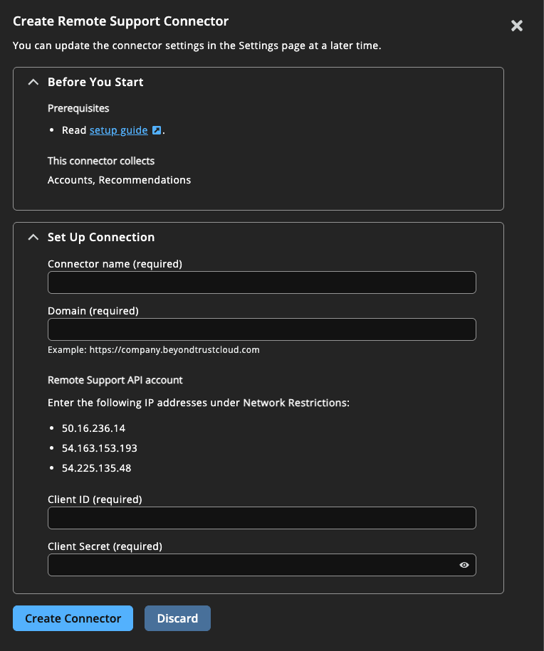 For FedRAMP connectors, refer to the IP address shown on the Create Connector page.