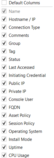 You can choose which columns to add, move, and remove in the grid within the Desktop console. To add customize columns, you must unselect the Default Columns checkbox.