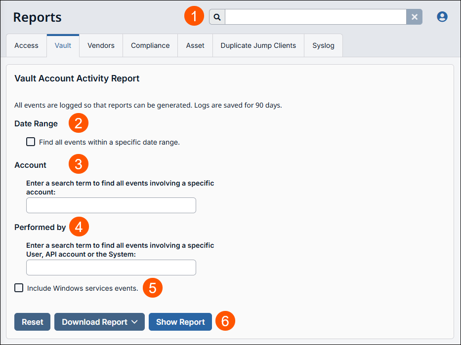 Vault reporting provides insights into the activity and management of privileged accounts stored in BeyondTrust Vault. It tracks actions such as: