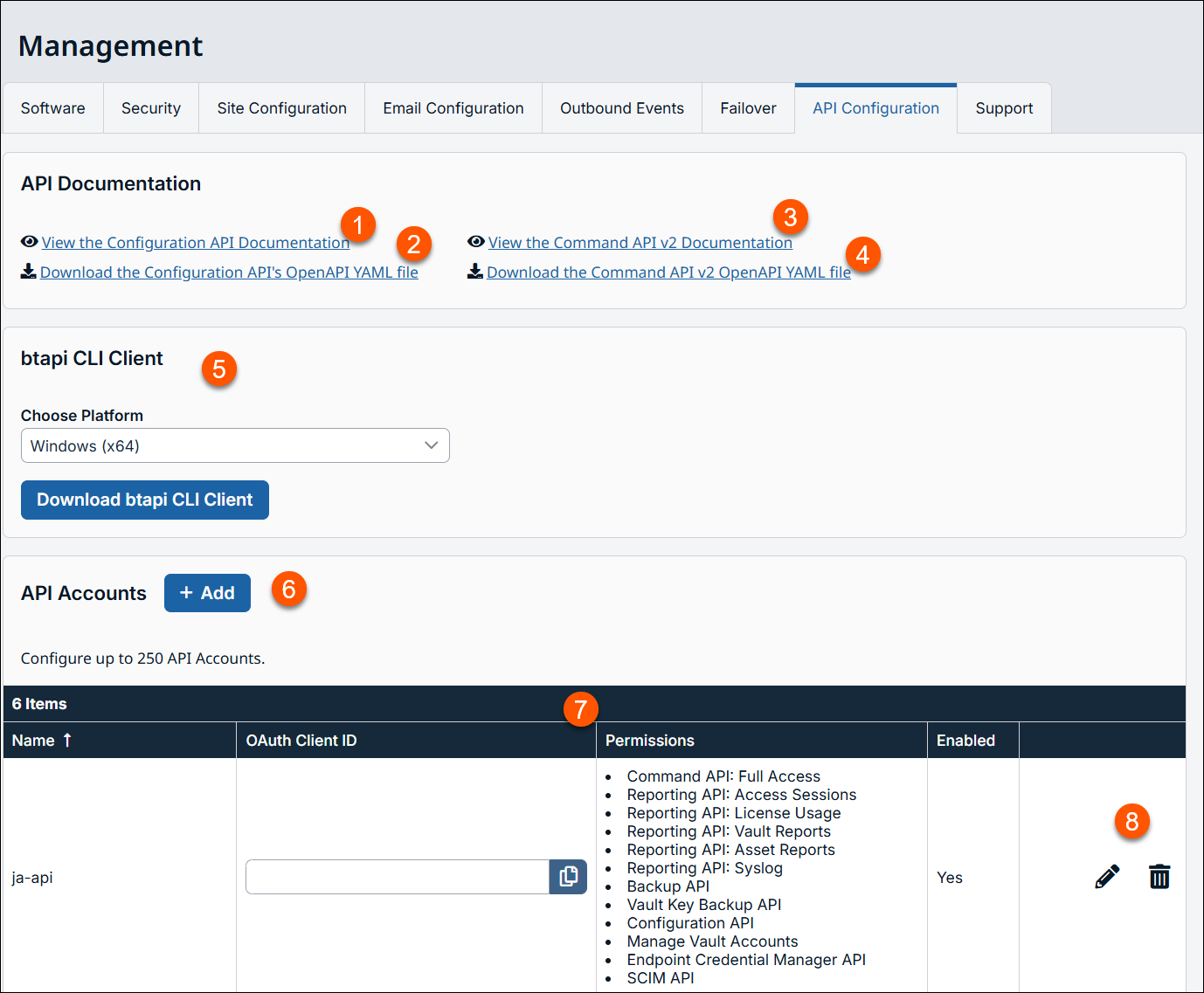 The Configuration API allows for the management and configuration of common tasks in /login, which can be automated and work with your orchestration processes. Check to Allow Access and, if access is allowed, check if this API can Manage Vault Accounts.