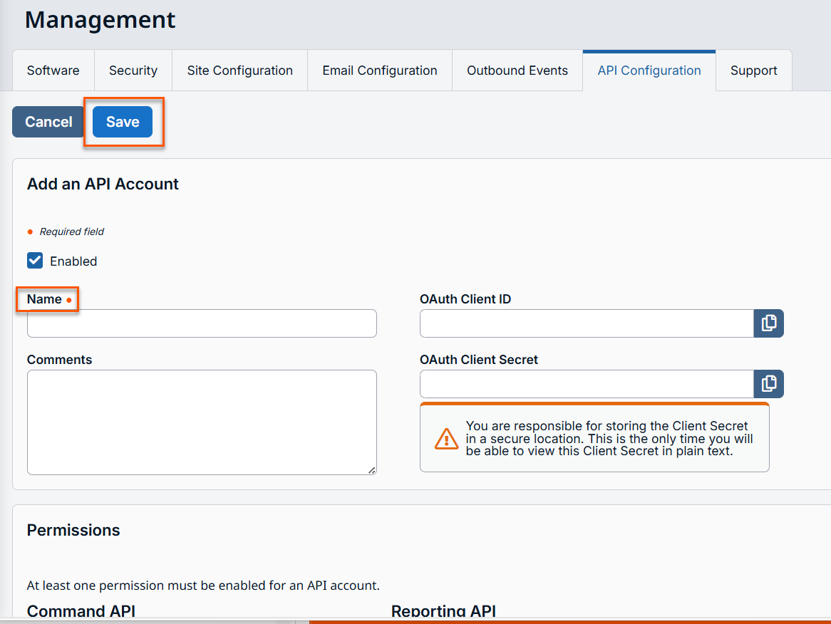 For Enabled, if selected, this account is allowed to authenticate to the API. When an account is not selected, all OAuth tokens associated with the account are immediately disabled.