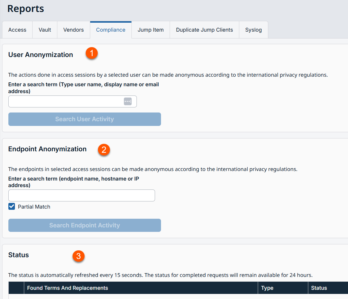 Important informationBy default, the Compliance tab is disabled. If your organization wishes to have this functionality, contact BeyondTrust Support.