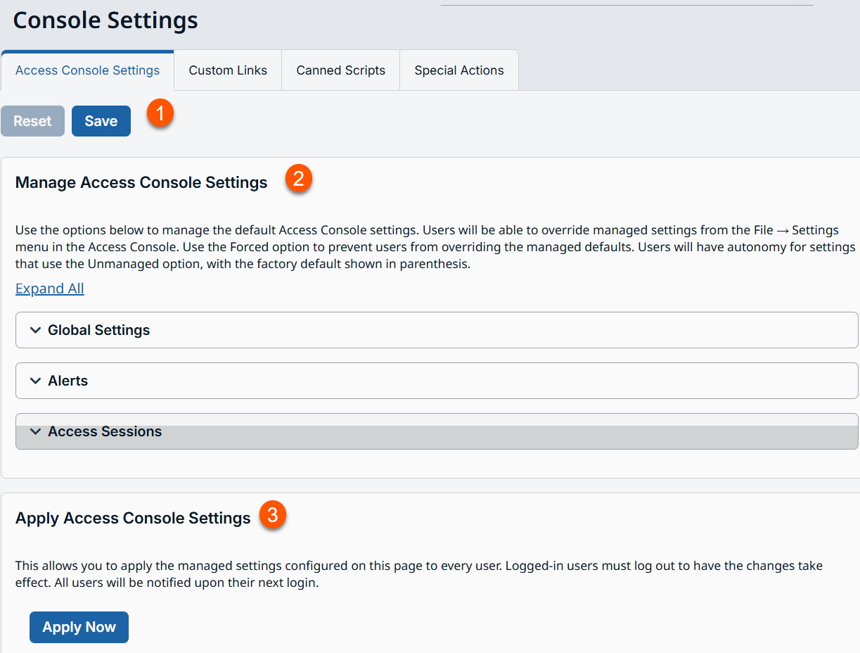 - Apply Access Console Settings: Applies managed settings to every user.
