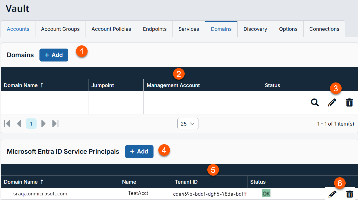 The Vault page opens and the Accounts tab displays by default. - Click the Domains tab.