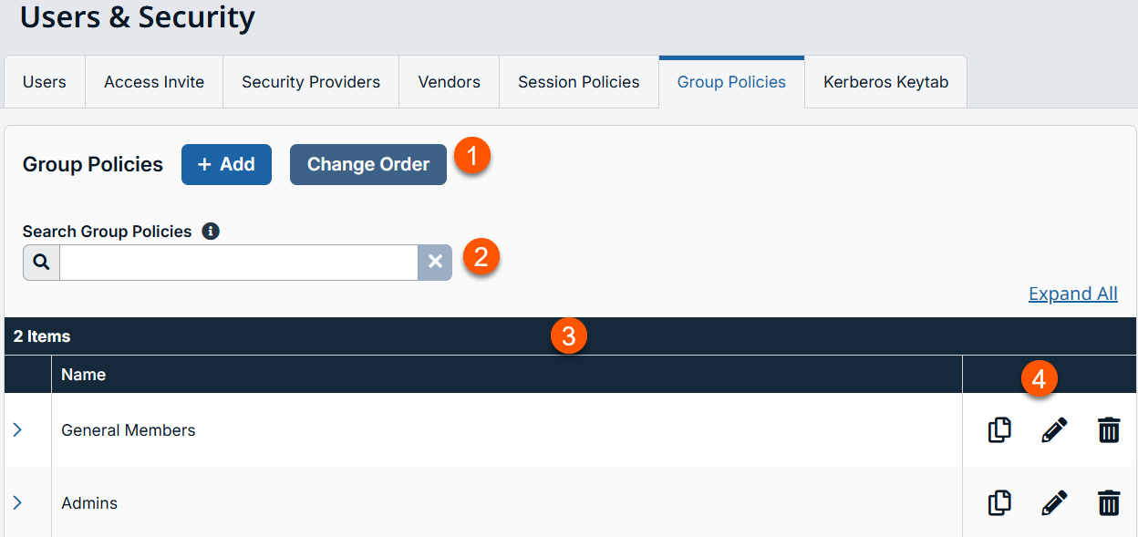 - From the Group Policies page, find the group policy you want to edit, and click Edit