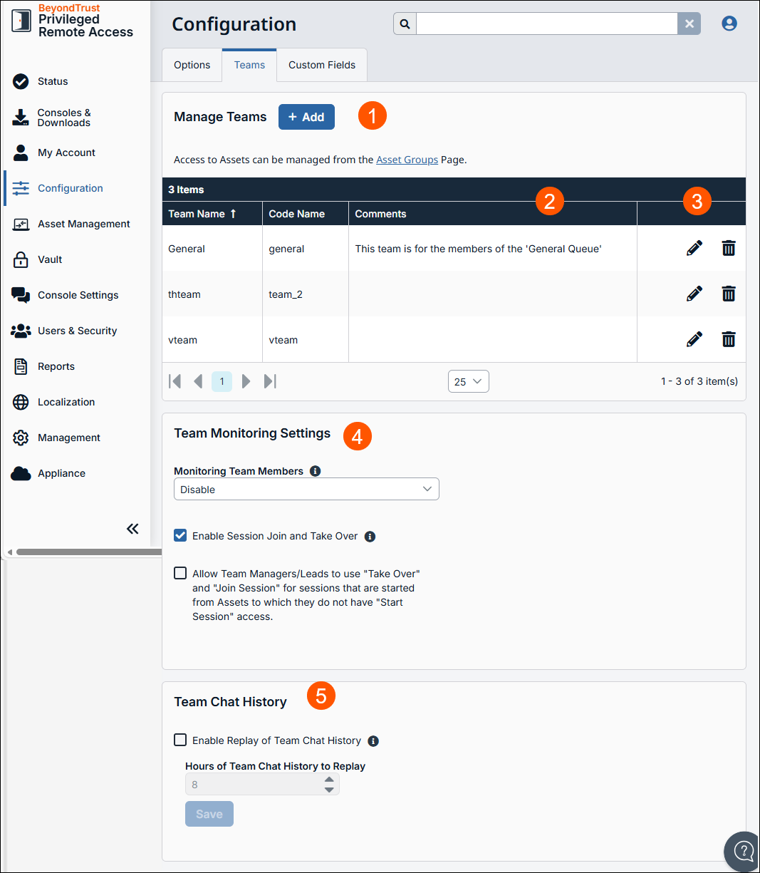 Team Monitoring Settings: Monitor team members, enable session join and take over, and allow team managers to use Take Over and Join Session.