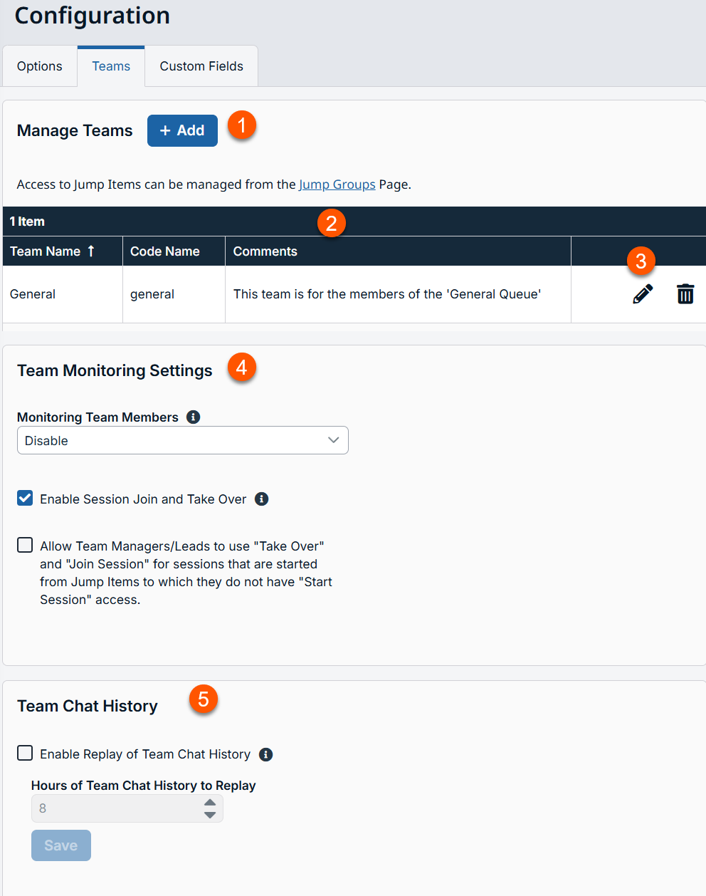 The Edit Team page's content is identical to the Add Team page. - Click Save.