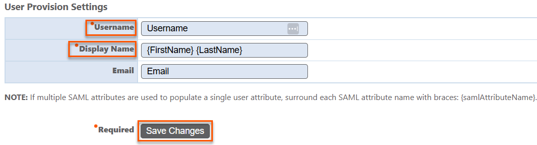 - Map the Username, Display Name, and Email to the corresponding attributes in your identity provider.