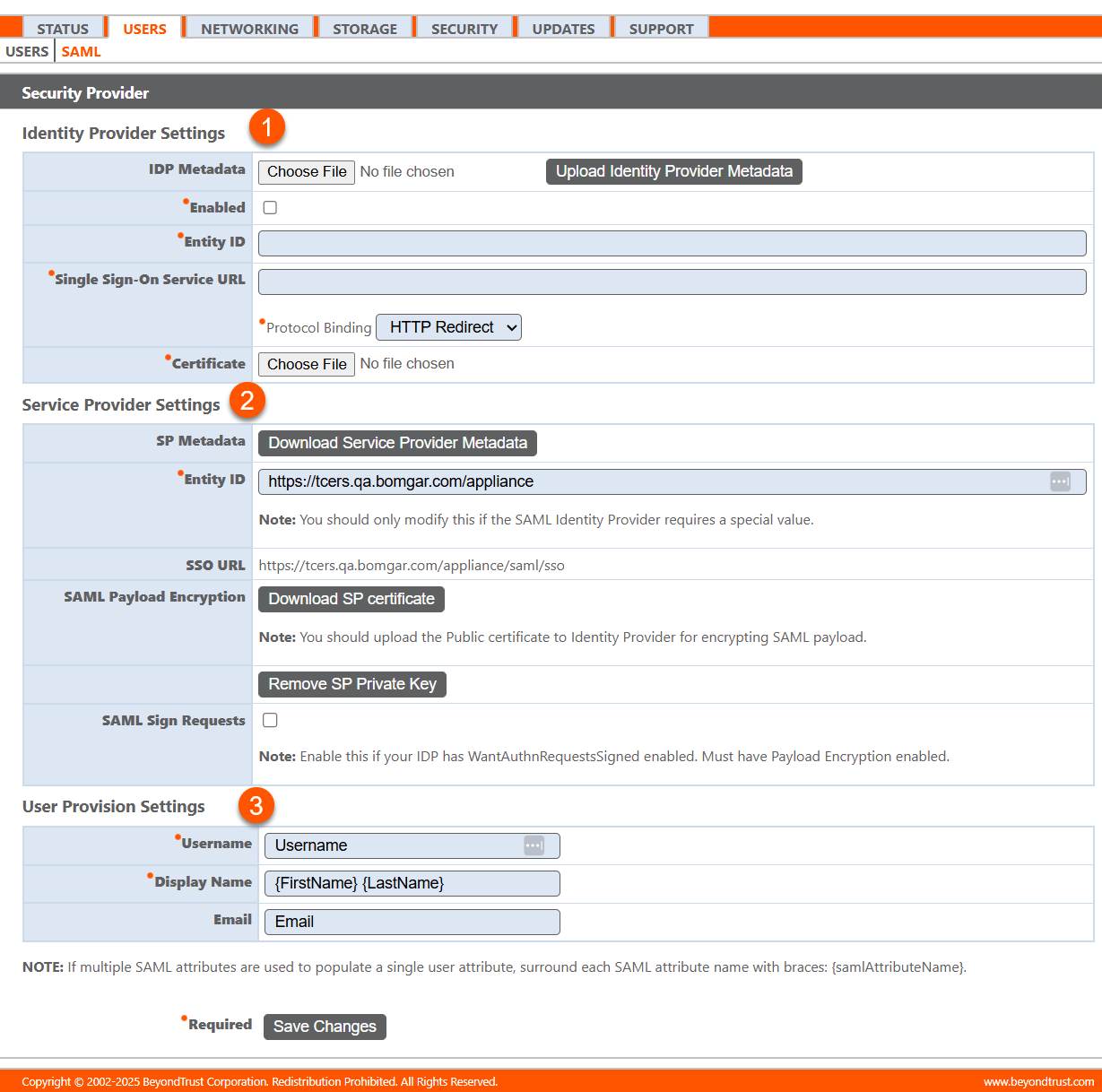 - Certificate: Upload a digital certificate to establish a secure connection between the B Series Appliance and the identity provider.