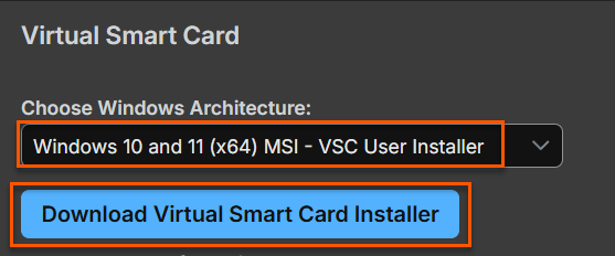 - Virtual Smart Card: Starts the download process of the Virtual Smart Card MSI file.
