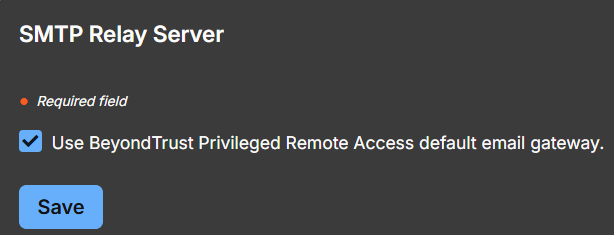 For those that want to use BeyondTrust hosted email settings, you can select the Use BeyondTrust Remote Support default email gateway checkbox.