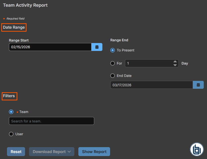 - Download/Show Report: Option to download or show report results.
