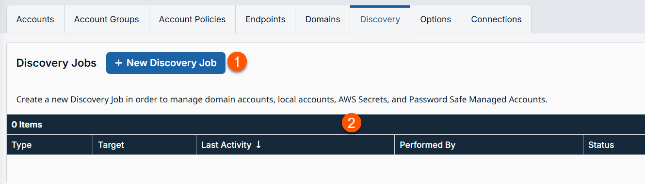 - Type: Defines the type of a discovery job, either a Domain or Jump Client.