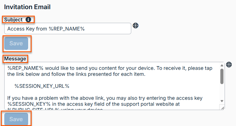 When a representative generates an Apple iOS profile access key from the representative console, the access key can be sent in an email to the iOS user.