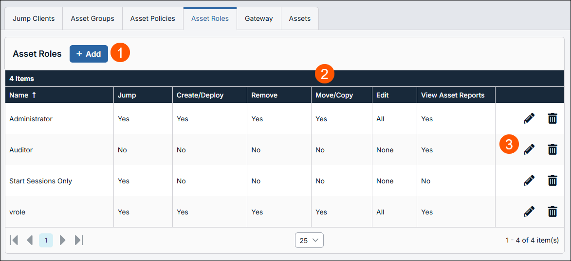 - From the Asset Roles page, click Add.